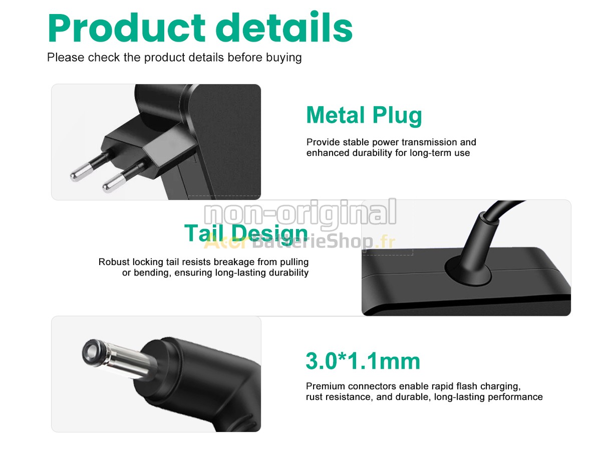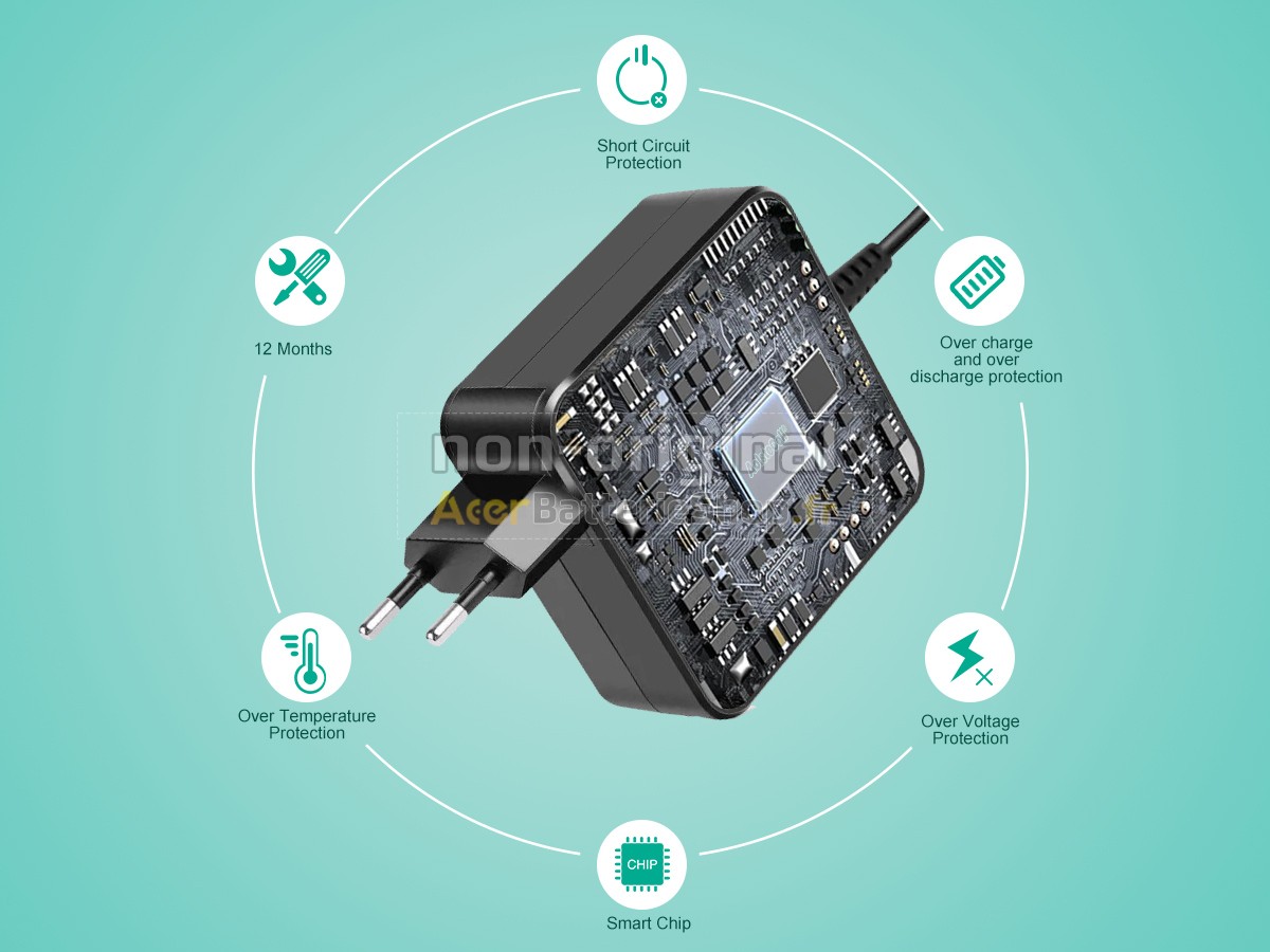 La qualité d’un adaptateur se mesure par son efficacité et sa fiabilité. L’adaptateur pour Acer Aspire R13 R7-372T-76T1 est équipé d’une technologie avancée de circuit intelligent, capable de réguler automatiquement la puissance de sortie selon les besoins de votre appareil. Cela garantit une charge rapide, stable et sans risque de surcharge ou de surchauffe.