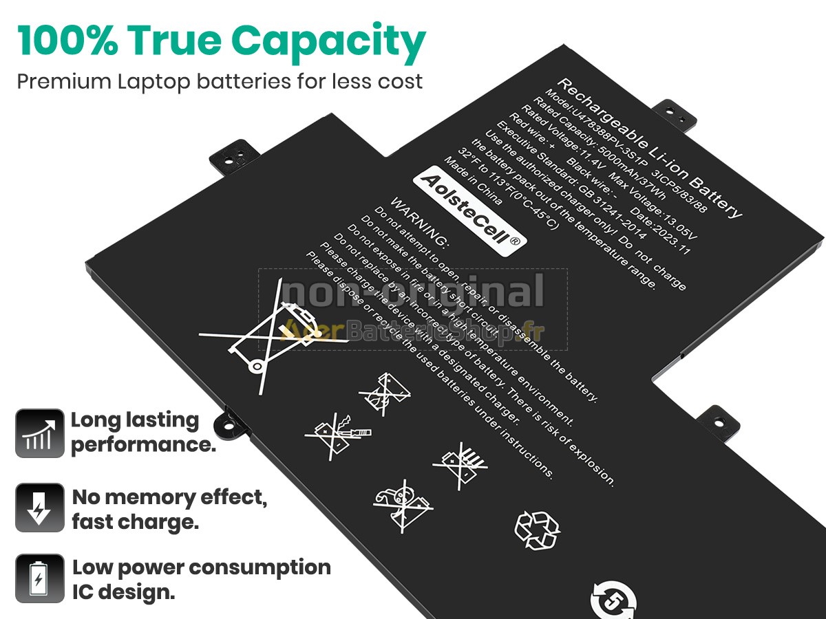 Une bonne batterie se juge à ses cellules. La qualité des cellules détermine la durée de vie et la sécurité. Des cellules de haute qualité de classe A+ sont utilisées dans la batterie ordinateur portable pour Gateway GWTN156-12GR, signifiant une densité énergétique plus élevée et une durée de vie plus longue. En plus, toutes les batteries sont conçues avec des circuits originaux qui contrôlent efficacement le courant et la tension afin de protéger la batterie et PC portable.